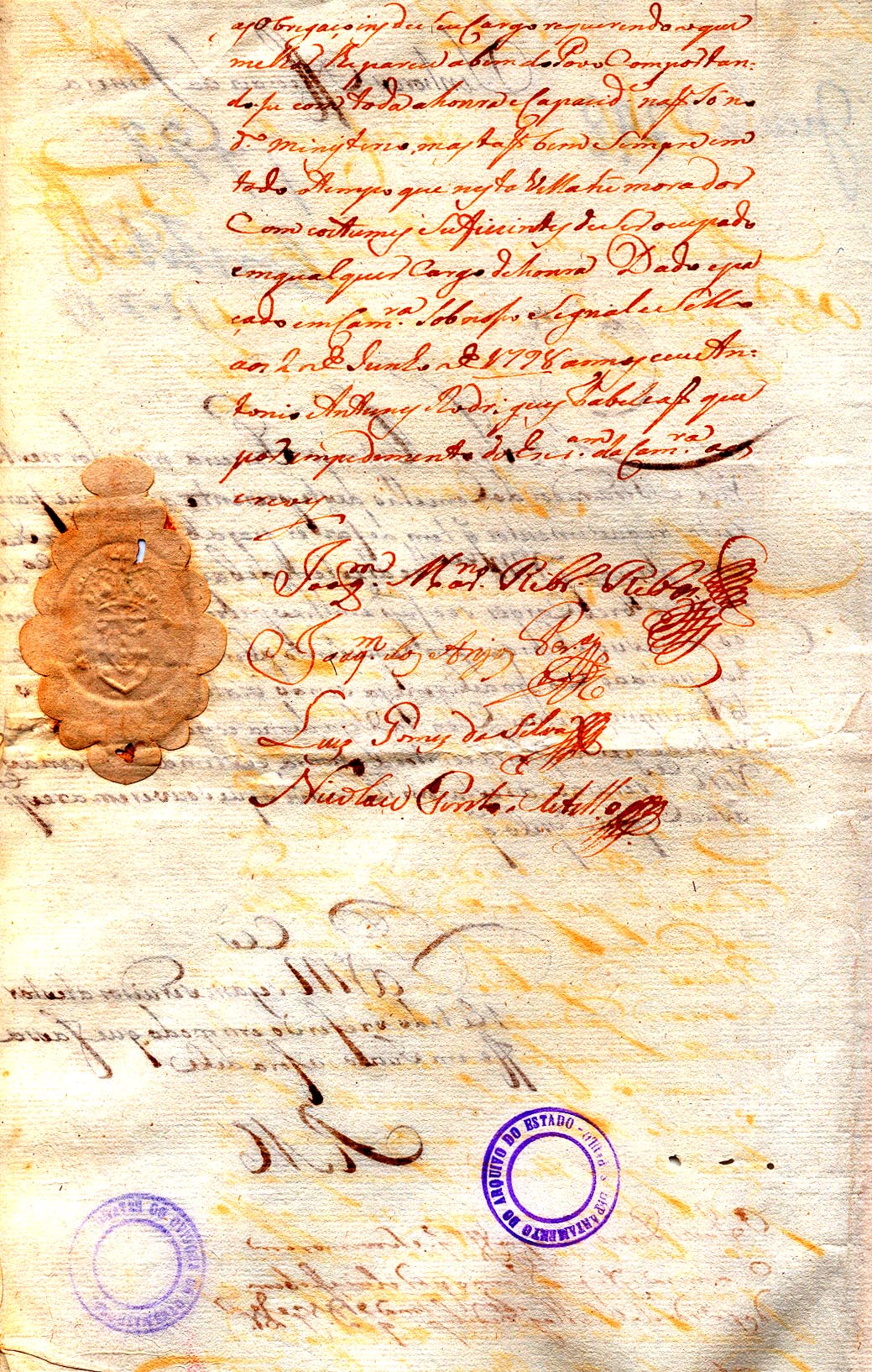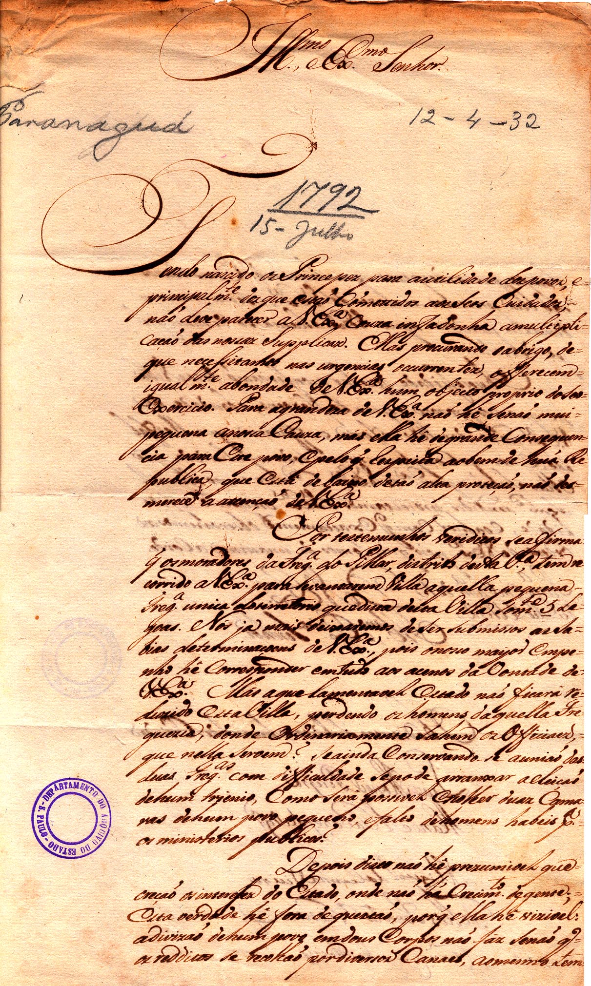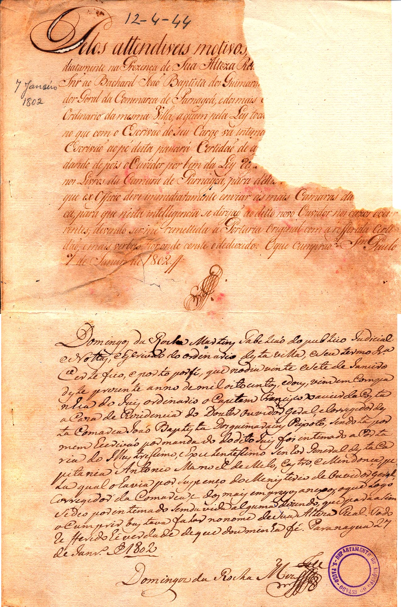 foi intimado a Portaria do Illustrissimo e Excelentissimo Senhor General desta Capitania Antonio Manoel de Melo Castro e Mendonça pela qual o havia por suspenço do Menisterio de Ouvidor Geral Corregedor da Comarca (SPO, 1802, 677, 26); o que melhor lhe parece o bem do Povo Comportando se com toda a honra e Capacidade naõ só no dito ministerio mas taõbem sempre em todo o ttempo que nesta Villa hé morador (CTB, 1798, 068, 04); como serâ possivel Escolher duaz Camaras de hum povo pequeno, e falto de homens habeis para os ministerios publicos? (PGA, 1792, 647, 27).